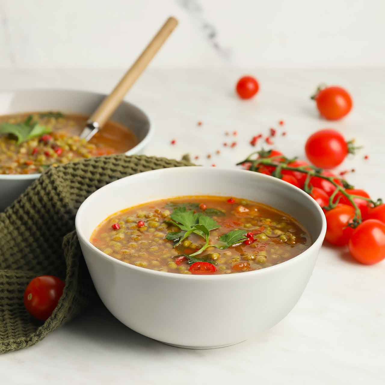 - 100 g grüne Linsen (gekocht)
